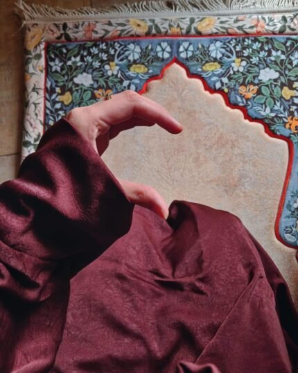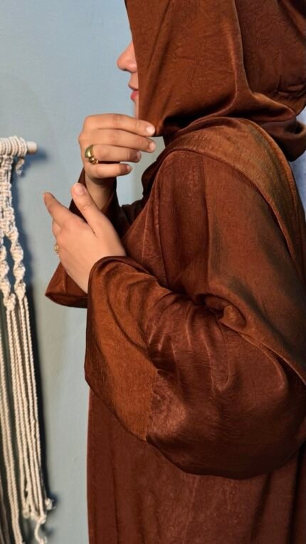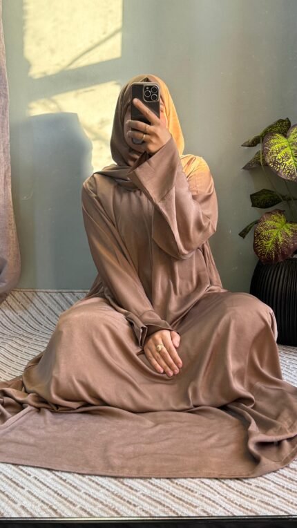 مصنوع من خامة ستان مستوردة ناعمة وفاخرة، تتميز بملمسها الراقي ولمعتها الهادئة التي تضيف لمسة أناقة مميزة، مع انسيابية رائعة تمنحك شعورًا بالراحة طوال اليوم، سواء في الصلاة أو الخروجات اليومية.
