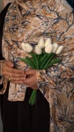 مزود بطرحة عملية سهلة الارتداء، ومقفول بـ مجنت ذكي بدل الدبوس ليسهّل اللبس ويحافظ على القماش دون شد أو تلف.