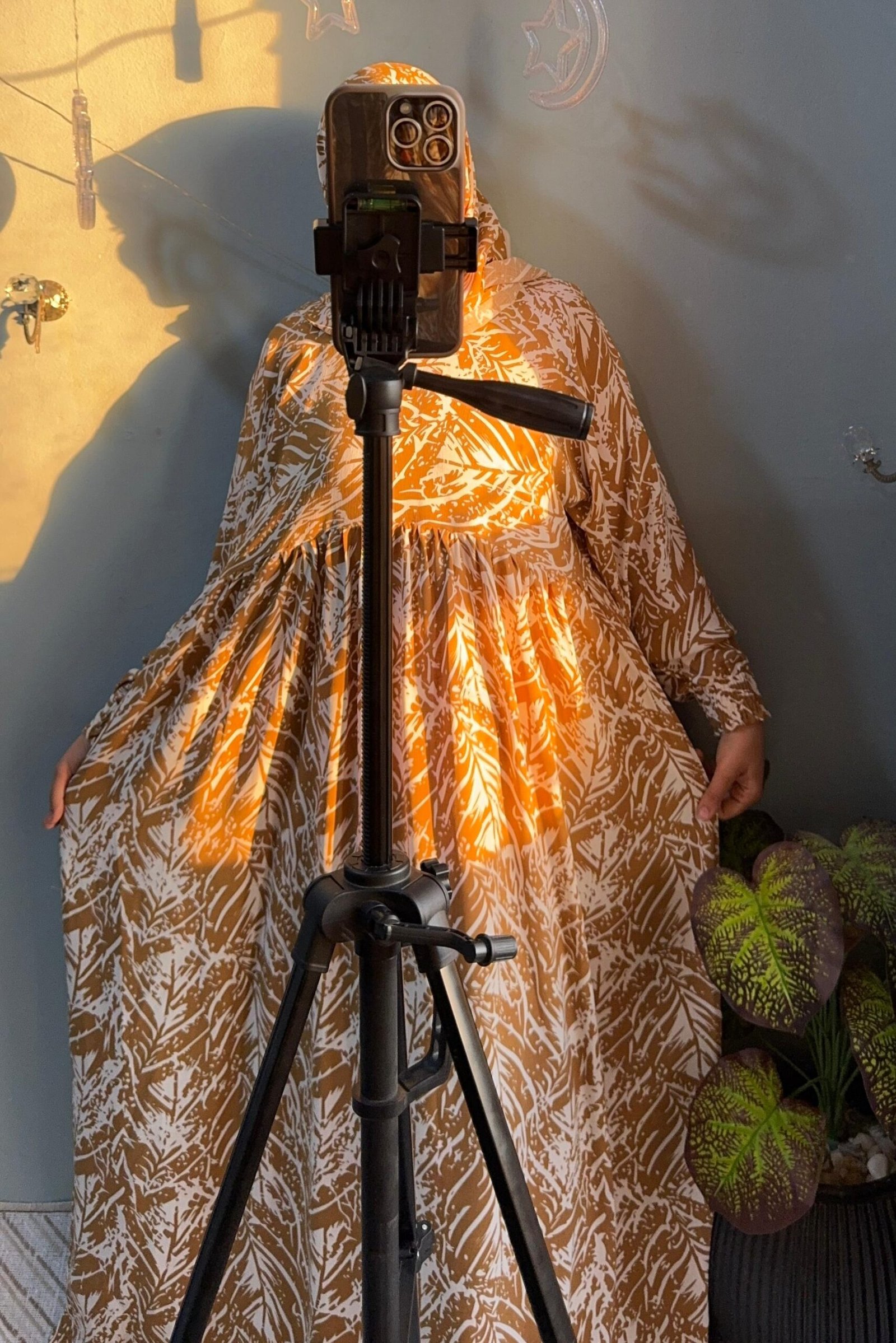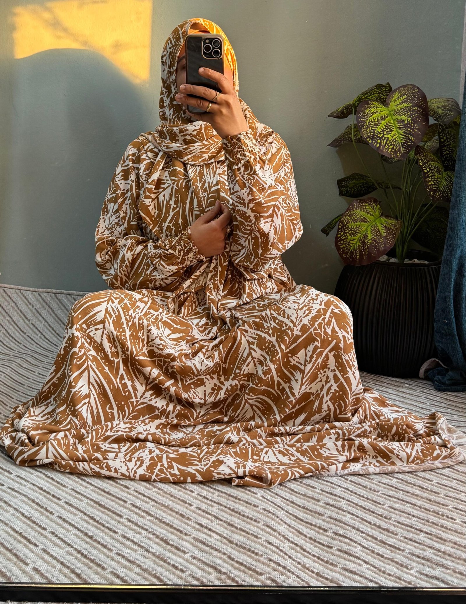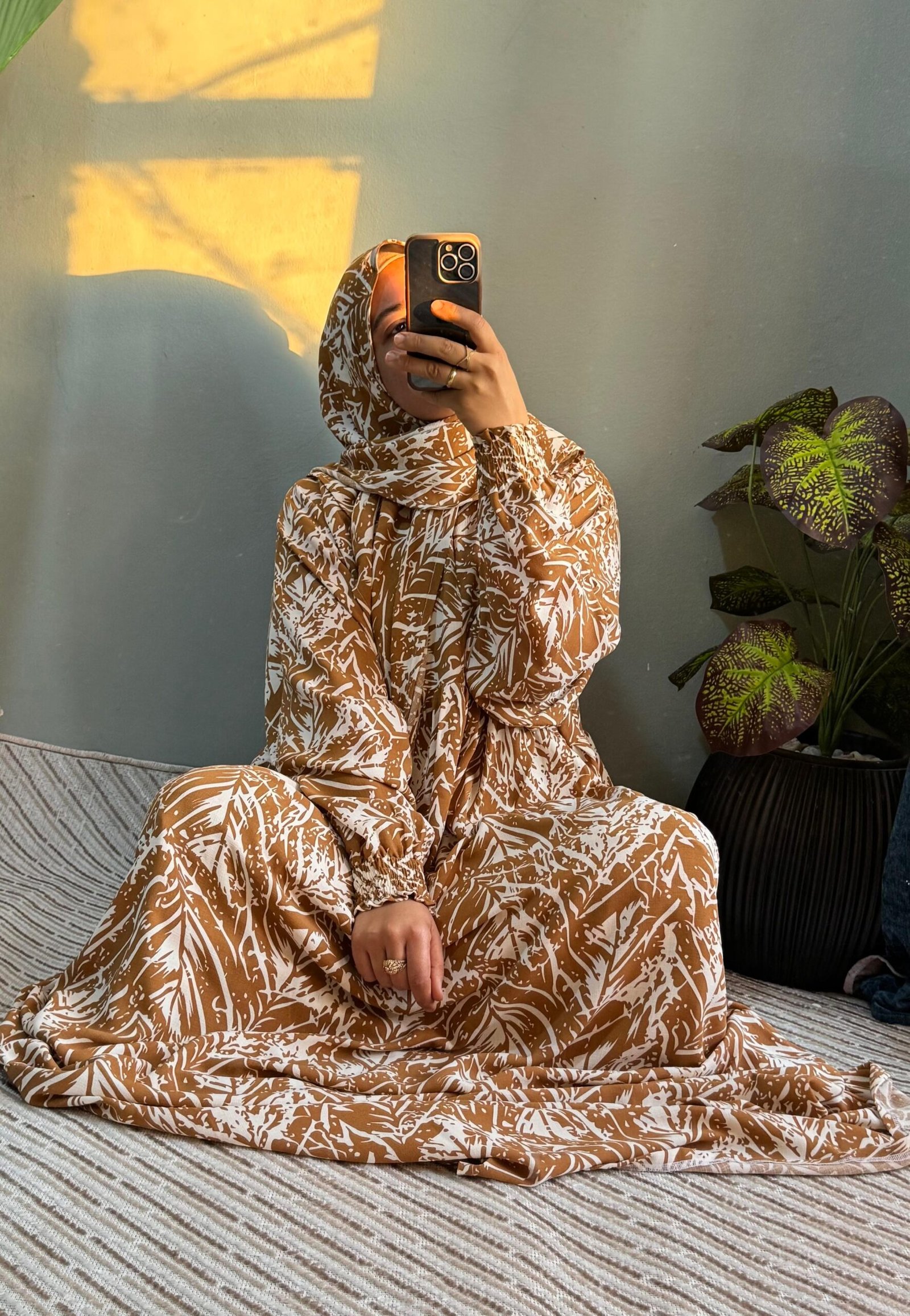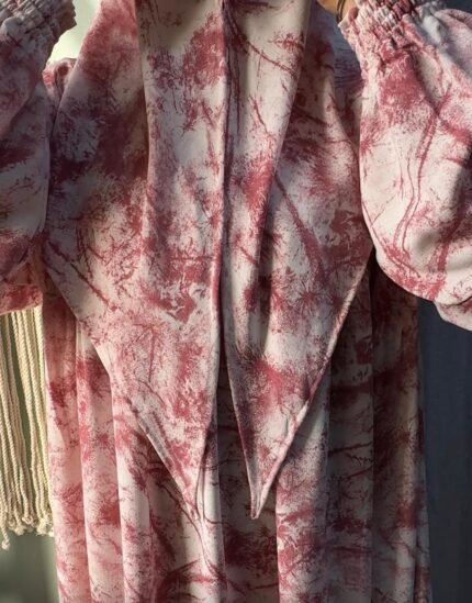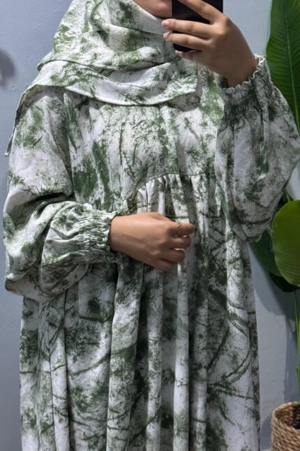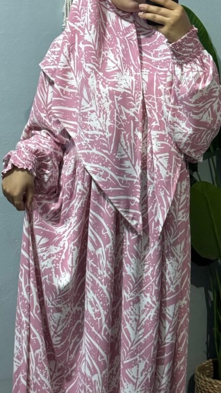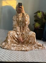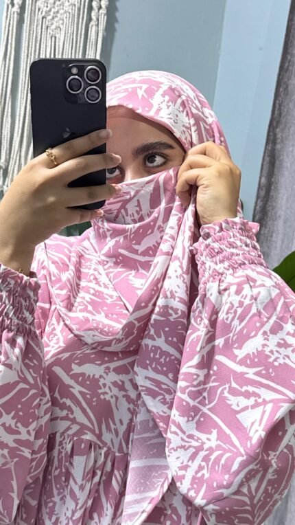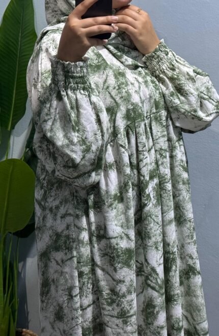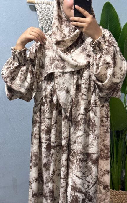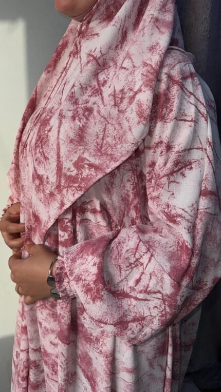 إسدال قطن كتان مستورد باللون الجملي، واسع ومريح فري سايز يناسب حتى وزن 120 كجم وطول 175 سم، مزود طرحة منسدلة على الصدر، مجنت لسهولة اللبس، واستك في الكم مع كشكشة من الأمام والخلف. مثالي لإطلالة أنيقة وعملية يوميًا.