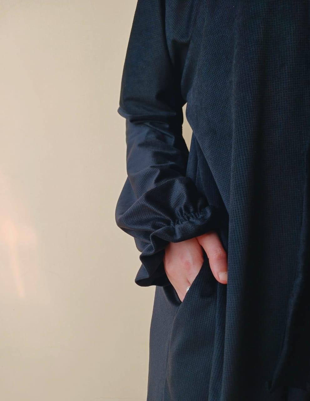 اختيار مثالي لمن تبحث عن قطعة تجمع بين العملية، الدفء، والأناقة الشتوية الهادئة بلون أسود راقٍ يسهل تنسيقه مع مختلف الإكسسوارات والأحذية.